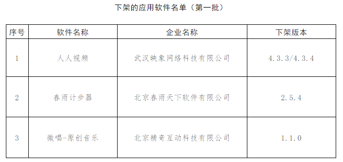 工信部信息通信管理局1月3日发布通报显示,2019年12月19日工信部通报41家存侵害用户权益行为APP名单至今,仍有3款APP未按要求完成整改。依据《网络安全法》和工信部规范性文件要求,信管局已对人人视频、春雨医生计步器、微唱-原创音乐三款APP进行下架。